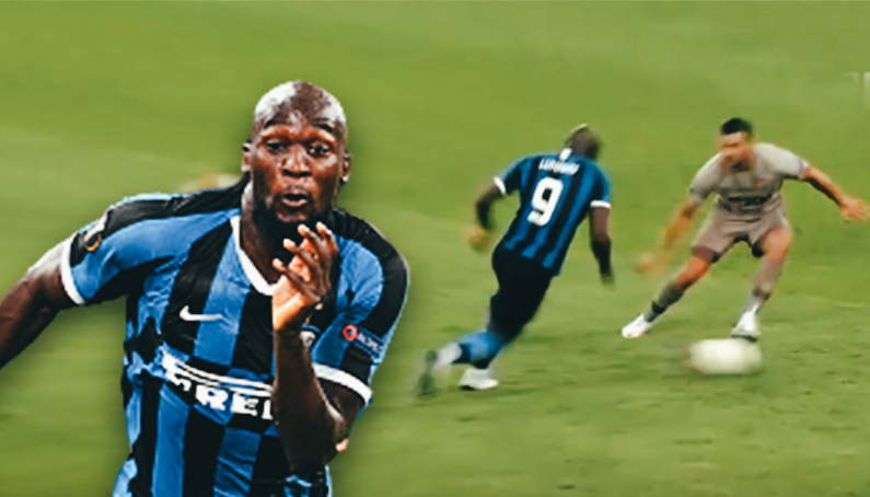 오늘자 루카쿠 달리기로 수비 때려 부수는 장면.gif