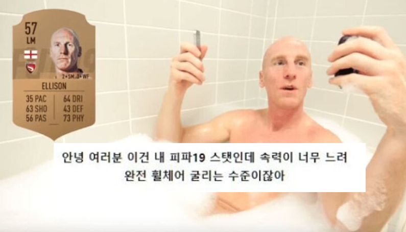 [EA에 항의하는 영국 4부 리그 축구선수.JPG] 이 선수 분 아들이 EA 피파 시리즈를 하는데 아버지 능력치가 너무 나빠서 실망함 이에 아버지는 EA가 틀렸단 걸 알리기 위해 영상을 제작해서 유튜브에 올림 꽁병지 형님이 생각나네 ㅋㅋㅋㅋㅋㅋ