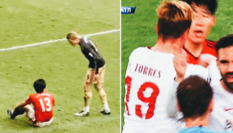 [한국에서 토레스 이미지가 바닥을 친 이유.gif] 박지성한테 위험한 태클하고 적반하장으로 화내는 모습.. 이때 한국 팬들이 많이 등 돌렸죠 그리고 손흥민 선수에게.. 예전 해버지에게 화낸 모습에도 이미지가 많이 안좋아졌는데 손흥민 선수에게까지 저러는 모습에 인성 논란이 많았었조. 출처(짤): soccerline