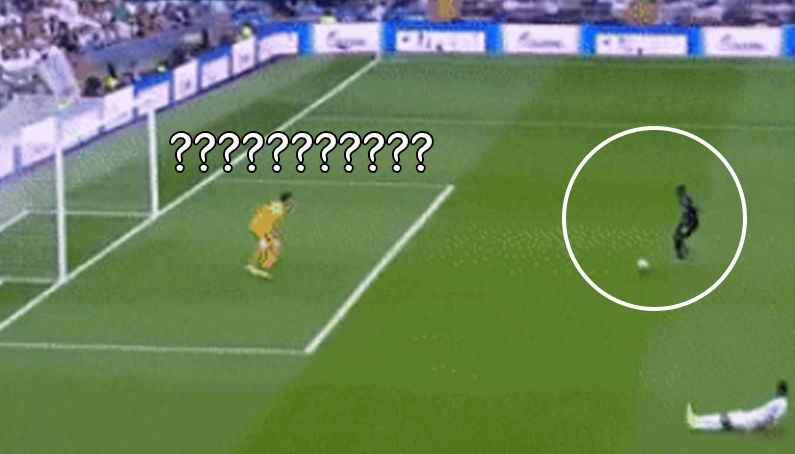 "골키퍼를 완전히 속여버리는...!", 미친 타이밍의 슈팅.gif