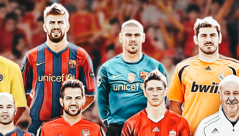 [2010년 무적함대 스쿼드 수준] 하비 마르티네즈, 호안 카프데빌라, 제라드 피케, 빅토르 발데스, 이케 카시야스, 페페 레이나, 라울 알비올, 세리지오 부스케츠, 후안 마타, 안드레 이니에스타, 세스크 파브레가스, 페르난도 토레스, 카를레스 푸욜, 세리지오 라모스, 페드로, 제수스 나바스, 페르난도 요렌테, 다비드 비야, 사비 알론소, 사비, 카를로스 마르체나, 다비드 실바, 알바로 아르벨로아