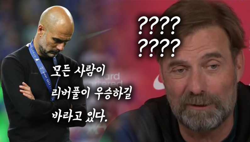 ['모든 사람이 리버풀 우승을 원한다'는 발언에 대한 클롭의 반응] <펩은 최근 영국 모든 사람들이 리버풀의 우승을 원한다는 이야기를 했음> 클롭 "모두가 우리를 서포팅하는지 모르겠다" "진짜 모르겠다" "원정길을 가거나 했을때 그런 느낌을 받지 않았다" "근데 뭐 아마 그(펩)가 나보다 더 잘 알겠지"