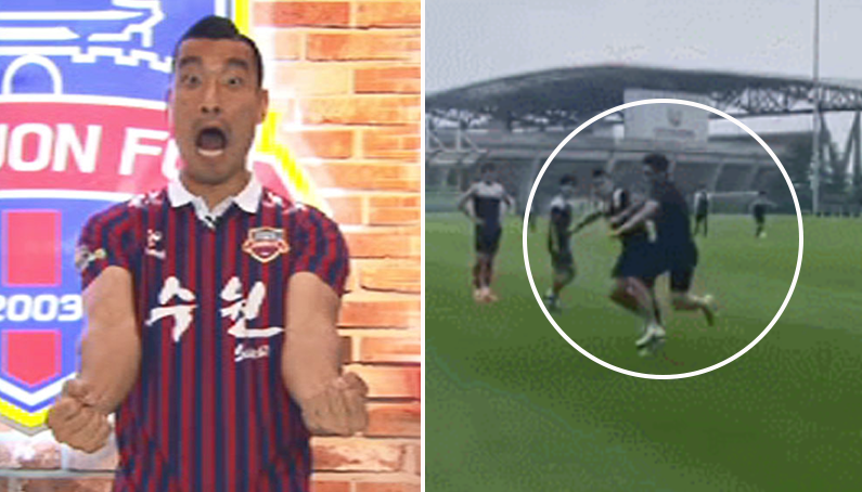 훈련중 감독님 상대로 습관 나오는 현역 복귀한 조원희ㅋㅋㅋ.gif