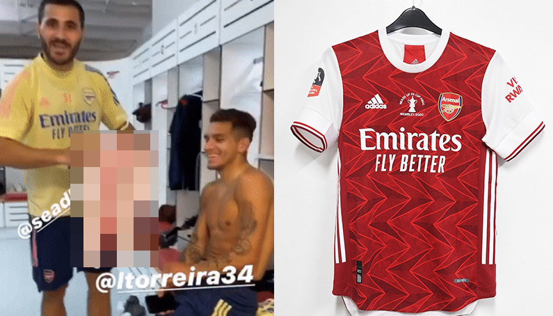 토레이라에게 새롭게 출시한 유니폼 선물한 아스널 선수들.gif