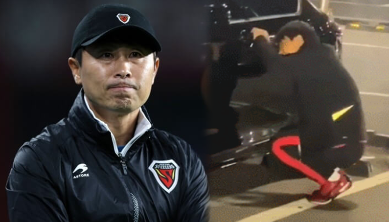 집에 가야되는데 차문 못열어서 낑낑대는 포항 김기동 감독