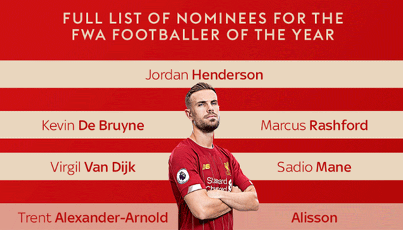 [FWA 회장이 밝힌 헨더슨 수상 이유] "조던 헨더슨은 최고의 프로페셔널이자 진정한 리더다." "헨더슨은 경기 중에 팀 동료들이 의지하는 선수이며 경기장 밖에서는 라이벌 선수들도 우러러보는 선수다." "FWA 올해의 선수상 투표 기준은 타의 모범이 되는 선수이다." "이 암울한 시국에 헨더슨은 자발적으로 다른 팀 주장들에게 연락하여 #PlayersTogether 조직을 만들었다. 그들은 수백만 파운드의 코로나 기금을 모금하여 NHS에 전달했다." "이제 #PlayersTogether 조직은 선수들이 각종 캠페인에 참여할 수 있는 기반이 되고 있으며 이번 BLM 캠페인에서 그 역할이 명백히 드러났다." "그는 진정으로 우리 상을 받을 자격이 있다." http://footballwriters.co.uk/editorial/jordan-henderson-footballer-of-the-year/ 출처 : 사커라인_신민