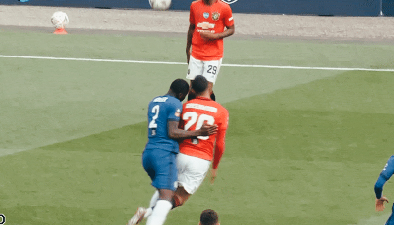 [오늘자 말 많은 뤼디거 헤더 궤적.gif] 노카드 상황이었다고 하네요.. 상대는 괜찮을까요?? 출처: new rocksoccer