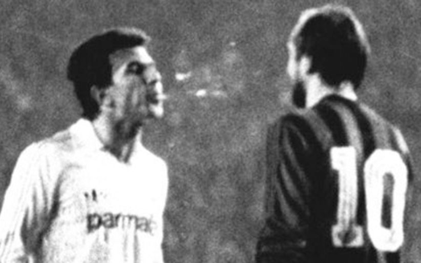 [챔피언스리그 5년 출장 정지 태클] 1987년 4월 8일 챔피언스리그 4강 1차전 바이에른 뮌헨 vs 레알 마드리드의 1차전 경기중 전반 38분 레알 마드리드의 공격수 후아니토 고메즈는 파울당한 이후 쓰러져있는 마테우스에게 달려가 심판이 보는 앞에서 마테우스의 등과 머리를 밟는 최악의 행위를 저질렀습니다. 후아니토는 퇴장당했고, 그는 축구계의 비난과 함께 UEFA가 주관하는 모든 국제 대회에 향후 5년간 출장 정지라는 중징계를 당합니다. 시즌이 끝난뒤 후아니토는 클럽의 명예에 상처를 입힌 것에 대해 사과하면서 말라가로 이적했습니다. 그는 징계가 끝나는 1991년 은퇴했으며, 이듬해 CP Merida 코치 생활을 하던 중 1992년 4월 1일 UEFA컵 레알 마드리드와 토리노의 준결승을 관람하고 메리다로 돌아오던 중 고속도로에서 일어난 교통사고로 사망합니다. 침뱉는 선수는 후아니토 고메즈라는 80년대 레알마드리드 레전드 선수인데 슈틸리케랑은 레알에 있을때부터 서로 사이 안좋았다고 함. 그래서 슈틸리케가 85년에 스위스 클럽 뇌샤텔로 이적하자마자 다음해에 우연찮게 레알과 유럽대항전에서 만났는데 동료로 뛰던 시절 쌓였던 불만 때문이었는지 슈틸리케 면상에다가 침뱉어버림 ㅋ