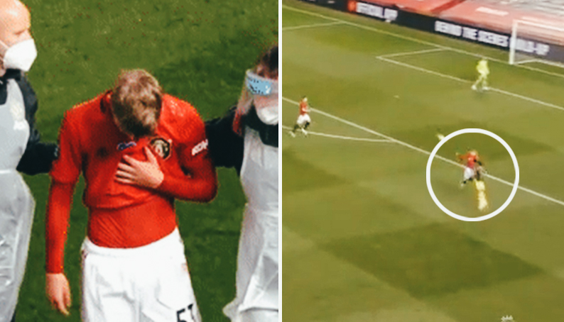 발목 부위.. 위험한 파울 당하는 그린우드.gif
