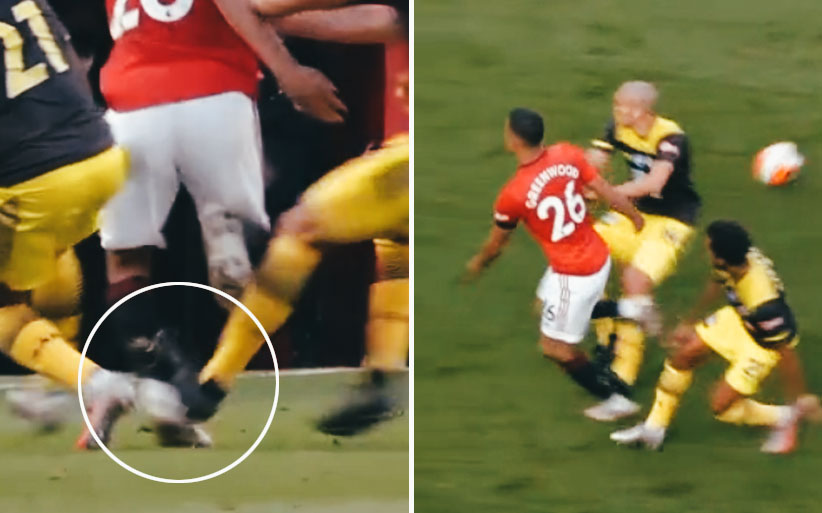 [발목 부위.. 위험한 파울 당하는 그린우드.gif] 스터드로 발목을 제대로 밟혔네요ㄷㄷ 요즘 폼 좋은데 큰일날 뻔.. (노파울 노카드)