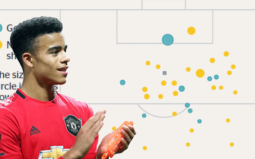 [그린우드의 슈팅 위치와 정확도 수준] 프리미어리그 이번 시즌 총 34번 슈팅 시도 9 득점ㄷㄷ 출처 : 뉴락싸