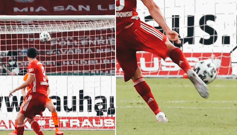 [포칼 결승]레반도프스키 무회전 중거리 슛팅.gif
