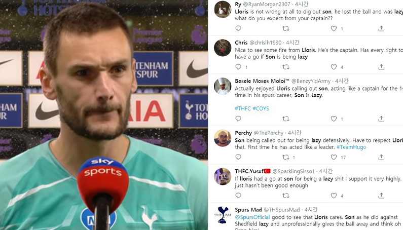 [오늘자 요리스의 제스처&인터뷰에 대한 현지팬 반응] *요리스의 인터뷰 리포터가 손흥민에게 화를 낸 이유가 히샬리송에게 내준 슈팅 찬스에서 (손흥민이) 공을 쫓아가지 않아서냐고 묻자 요리스: “Yeah, I think to concede a chance a few seconds before half-time because we don't make the pressing properly...yeah, that annoyed me." "네, 우리가 압박을 제대로 하지 않아서 전반전 끝나기 몇 초 전에 찬스를 내준게 절 짜증나게 했어요." 인터뷰에 대한 현지팬 반응 (요리스가 손흥민에게 안일하게 수비했다고 인터뷰한 장면) *최근 손흥민 선수의 히트맵 트위터에서 son lazy Lloris 키워드로 검색해보면 사람들이 영상을 보고 분석하는 게 아니라 그냥 요리스 말만 듣고 손흥민이 게을러서 그랬나보다 하고 짐작함ㅠㅠ. 요리스가 화내길 잘했다는 사람이 많네요ㅠㅠ 출처 : 뉴락싸