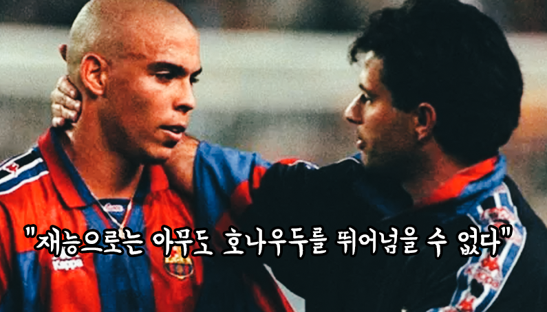 [레전드 '하프라인 드리블골'을 목격한 무리뉴.gif] 나는 호나우두가 바르셀로나에서 수비 5~6명을 때려부수고 골 넣는 걸 목격했다. 말했다시피 그는 경이적이었지. 절정일 때의 마라도나가 내가 봤던 최고였어. 최고 중에서도 최고였다. 그리고 호나우두는 거기에 가장 근접한 2등이겠지. - 바비 롭슨 (바르셀로나 감독) 나에겐 브라질의 호나우두가 최고다. 메시와 호날두가 지난 15년 동안 길고 성공적인 커리어를 쌓으면서 정상에 올랐다. 하지만 재능에 대해서만 엄격하게 따진다면 아무도 호나우두를 뛰어넘을 수 없다. 바르셀로나에서 바비 롭슨 감독 밑에서 뛰는 호나우두가 최고라는 걸 난 이미 알고 있었다. 부상은 호나우두의 믿을 수 없는 커리어를 죽여버렸다. 호나우두는 19살 때 이미 엄청난 재능을 뽐내고 있었다. 재능만 이야기한다면 그 누구도 호나우두를 넘어서지 못한다. -무리뉴 (바르셀로나 코치) 수십번 돌려봤다는 그 레전드 골 출처 : 뉴아이라이크사커_현승회.