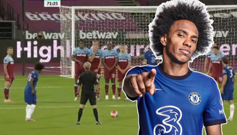 오늘자 미친 궤적으로 들어가는 윌리안의 프리킥.gif