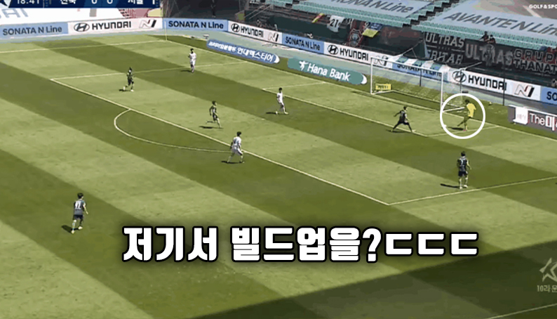 ["아찔한 순간"...FC서울의 후방 빌드업] 최근 익수볼이 보여주고 있는 최후방에서 시작되는 빌드업 저 상황에서 풀어 나온다면 정말 좋겠지만, 짤리면 너무 위험하죠. 데뷔전 데뷔골 찬스를 놓친 2004년생 강상윤선수 너무 아쉬웠겠네요. 출처 : 뉴락싸__음교수2