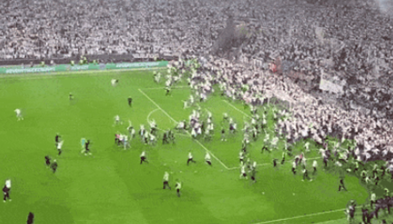 ['유로파 결승 확정' 경기장으로 쏟아져 들어오는 프랑크푸르트 팬들] 유로파 결승 진출이 확정되자 경기장으로 쏟아져 들어와 선수들한테 뽀보 갈기는 프랑크푸르트 팬들ㅋㅋㅋㅋ
