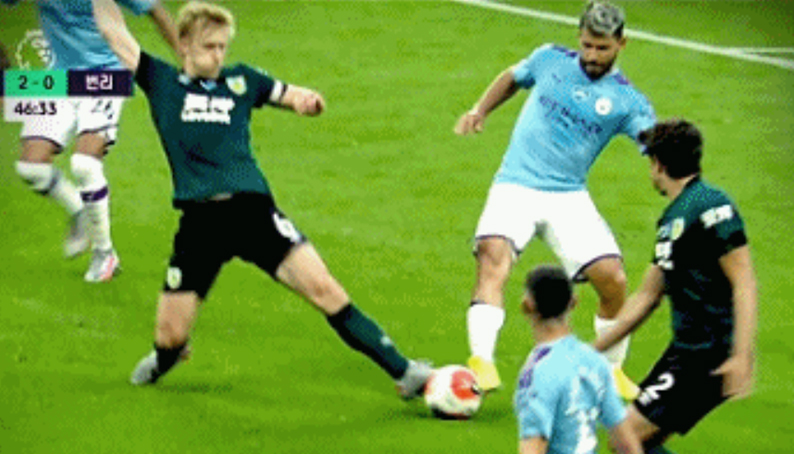 아구에로의 부상과 교체 후 펩과의 대화 장면.gif