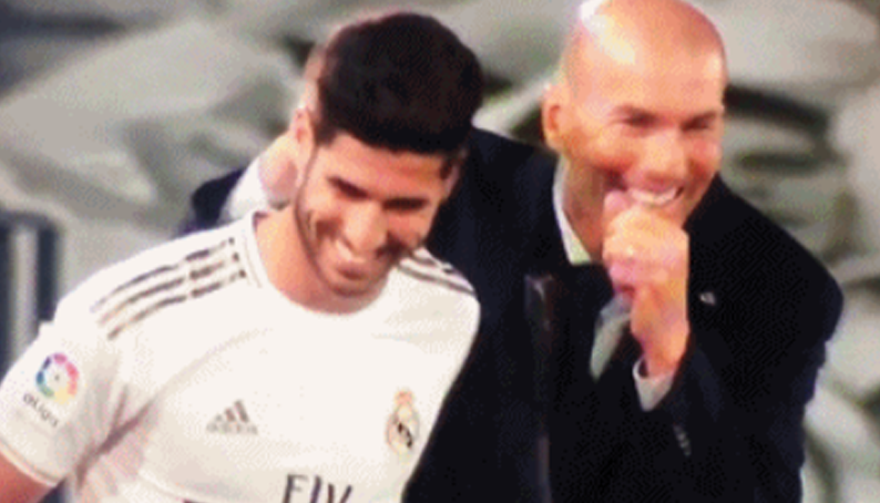 330일만에 경기에 나서는 아센시오 긴장을 풀어주는 지단.gif