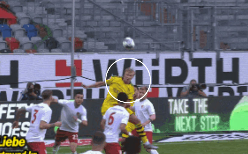'될 놈은 될 놈' 홀란드의 타점 높은 극장 헤더 득점.gif