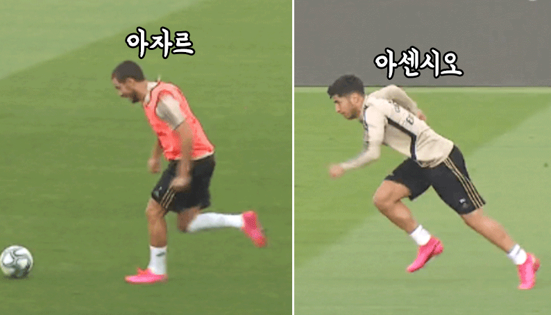 [아자르, 아센시오 슈팅 연습.gif] 전력질주 이후 슈팅으로 연결하는 아자르 전력질주로 와서 다이렉트 슈팅을 보여주는 아센시오 출처 : 뉴아이라이크사커_갈라티코2기