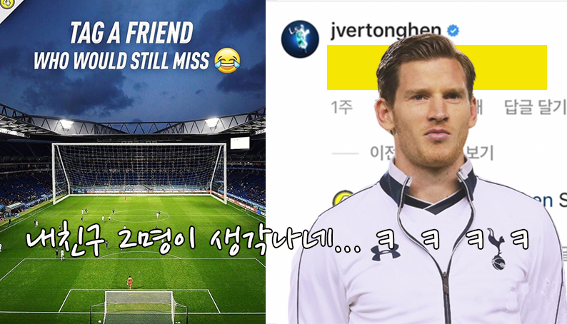 [??? : 이 골대에도 골 못넣을거 같은 사람 태그해봐] 433 : 이 골대에도 골 못넣을거 같은 사람 태그해봐 베르통언 : 무사 시소코, 세르쥬 오리에 ㅋㅋㅋㅋㅋㅋㅋㅋㅋㅋㅋㅋㅋ 앜ㅋㅋㅋㅋㅋㅋㅋㅋㅋㅋㅋㅋㅋㅋ 진짜 베르통언 ㅋㅋㅋㅋㅋㅋㅋㅋㅋㅋ 출처 : 433인스타그램