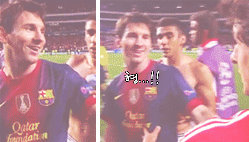 [자신의 우상과 인사 나누는 메시 표정.....gif] 자신의 우상 아이마르와 인사 나누는 메시 표정 ㅋㅋㅋㅋㅋㅋㅋ 파블로 아이마르 전성기 수준... 출처 : 에펨코리아