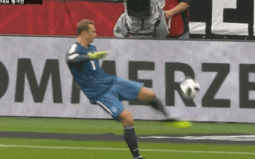 [상대 팀 도발하는 노이어의 여유.gif] 평가전에서의 노이어ㄷㄷ 상대팀 공격수가 바로 앞에 있는데 저런 플레이를..