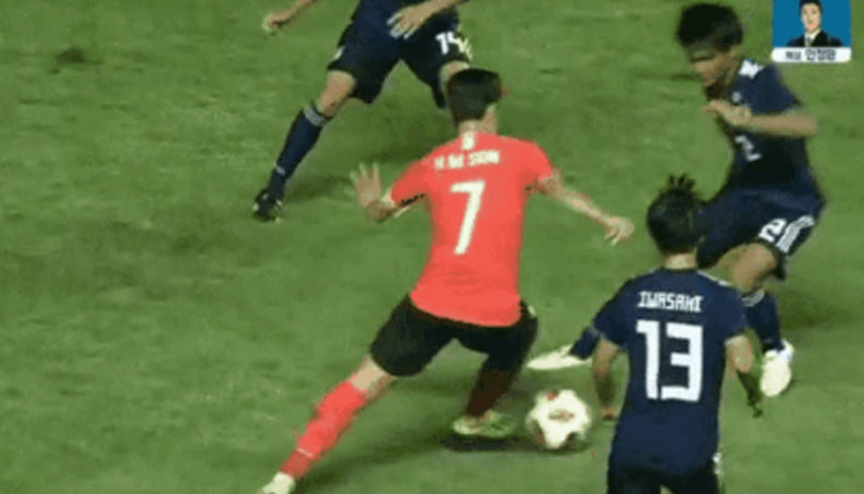 [손흥민의 전매특허 감아차기를 '저지한 선수'] 손흥민의 전매특허인 옆으로 툭치고 감차를 저지한 남자 이승우ㅋㅋㅋㅋ 이승우 "비켜!비켜!!"