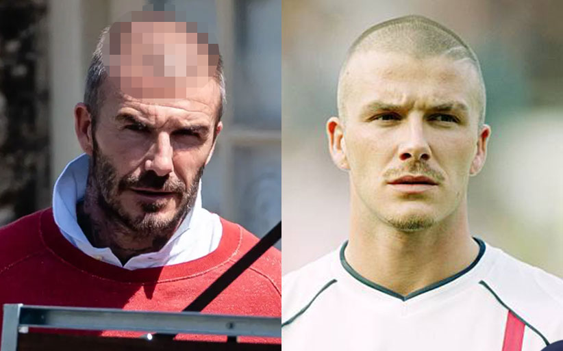 [탈모가 시작된 데이비드 베컴??] 근데 아래 사진 보면 또 괜찮아 보임. 서양인들의 얇은 모발에 삭발했다가 다시 기르는 중이라 숯이 더 없어 보인 듯? 아래 사진은 작년 한국 방문했을 때