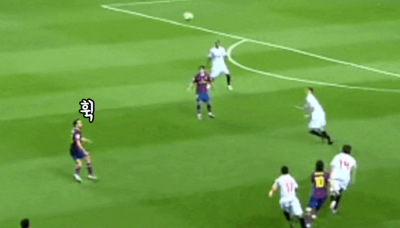 [실축할 때 좋은 미드필더들의 필수 행동.gif] 짧은 찰라에 고개를 돌려 공격수 위치를 파악하는 사비 경기 중 쉴 새 없이 동료들 위치 파악하는 이강인