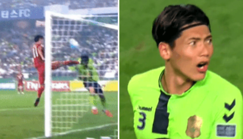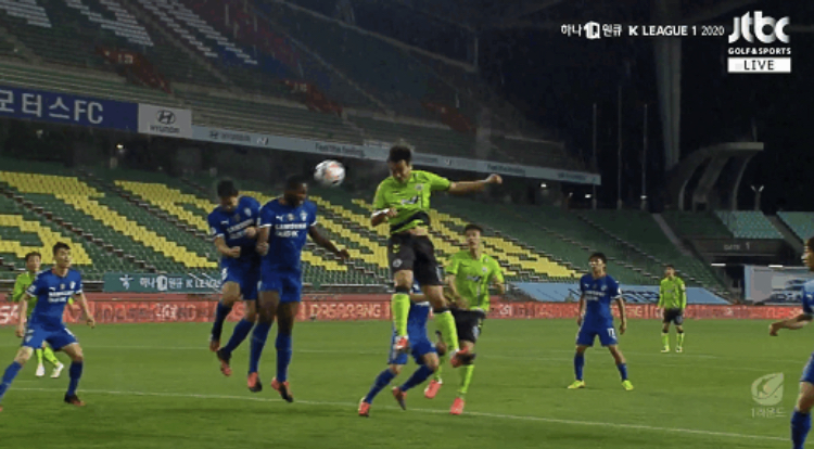[깨알같이 예능감을 보여주는 K리그.gif] 시즌 1호 뒤통수 헤딩