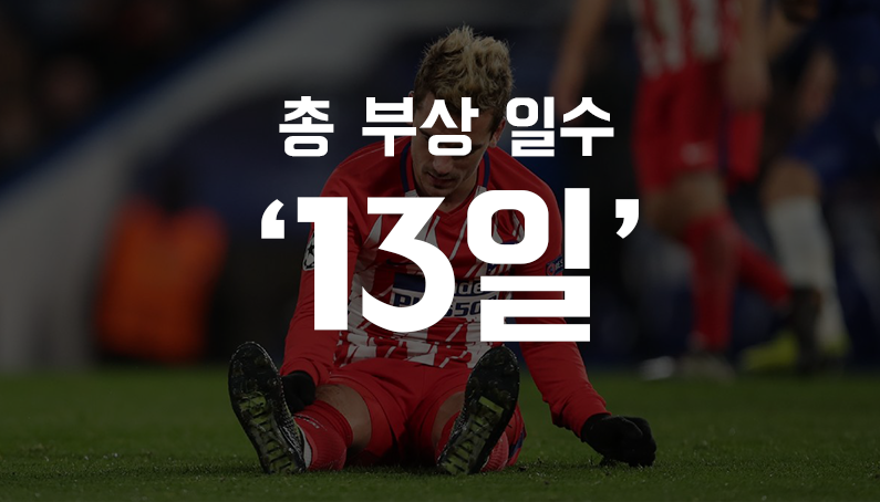 [현재 축구계 역대급 철강왕인데 언급 안되는 선수] 는 앙투완 그리즈만 프로 데뷔 10년동안 부상 횟수는 단 13일 커리어 중에 ATM같이 에너지 레벨 많이 요구하는 팀에서도 있었다는게 ㄷㄷㄷㄷ 출처 : 사커라인_토탈풋볼