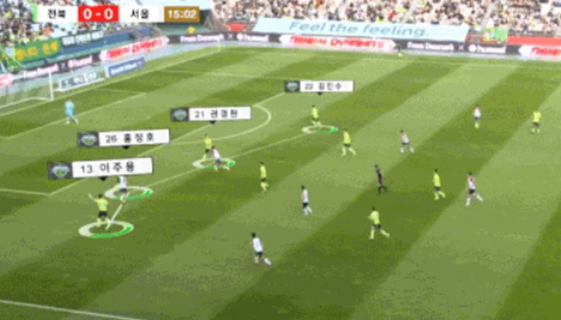 [소름돋는 jtbc K리그 중계수준ㄷㄷㄷ.gif] 양 팀 수비라인 잡아주는 카메라 전북-서울전 쓰인 중계 기술은 선수들의 움직임을 쫓는 필드 트래킹 카메라 비전 방식인 ‘카이론헤고(ChyronHego)’의 광학추적 시스템 트래캡(Tracab)을 운영해 얻은 결과다. 프리미어리그는 물론 분데스리가, 라리가에도 선수들의 전력 분석을 제공하는 ‘카이론헤고’사의 기술을 이용해 이날 경기에서는 수비라인 포메이션, 주요 선수의 뛴 거리와 속도, 이동 경로와 히트맵 등을 실시간 가상 그래픽(VIRTUAL PLACEMENT)으로 확인할 수 있었다. ’카이론헤고’ 분석 프로그램이 경기 중 국내 팬들에게 처음 노출된 건 지난 7월이다. 유벤투스 초청 친선경기 당시 전광판을 통해 첫 선을 보이면서 현장의 볼거리를 늘리고 관람 편의를 도왔다. 이후 업계 관계자들 사이 입소문이 퍼졌고, JTBC 3 FOX Sports가 발 빠르게 스타트를 끊었다. 출처 : 아이라이크사커 올시즌부터는 연맹에서 미디어센터를 신설했고, "UEFA 등 해외 리그 경기를 보면 사용하는 그래픽이나 자막 가이드라인이 있어, 어떤 방송사에서 중계를 보더라도 통일성이 있다”며 “K리그 역시 이번 계기로 통일화된 모습을 보여줄 수 있을 것”이라고 했다. 또 “인공지능(AI) 시스템을 활용해 하이라이트 영상 제작도 가능해진 만큼, 영상 제공 속도도 높일 것”이라고 했다.