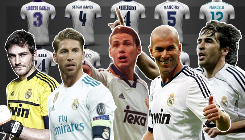 [역대 레알마드리드 선수들로 5인팀 만들기] 가로줄 당 1 명 골라서 총 5인팀 만들기(7번 Ronaldo는 호날두, 9번 Ronaldo는 호나우두) 카시야스-라모스-레돈도-지단-호나우두 여러분의 선택은??? 출처 : 골닷컴