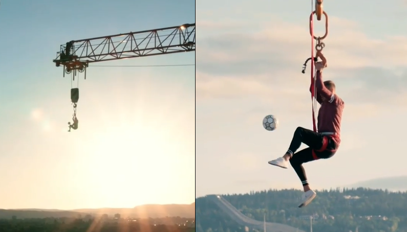 [크레인에 매달려 저글링하기 ㅋㅋㅋ.gif] 근데 저기서 공 떨어트리면 어떻게 되는 거죠??