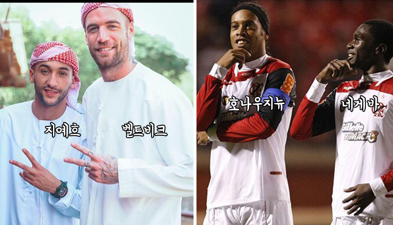 [K리그 출신 용병들의 미친 인맥ㄷㄷㄷ] 벨트비크(수원FC) - 지예흐(개절친. 첼시 이적도 가장 먼저 알았다고 함) 데얀(인천, 서울, 수원, 대구) - 요베티치(K리그 우승도 축하해줌) 나니자야모(과거 강원 FC, 등록명 나니) - 그리즈만, 라카제트(개절친) 오군지미(과거 수원FC) - 쿠르트와(윗 짤로 설명가능한 사이) 네게바(경남) - 호나우지뉴 몰리나(과거 성남, 서울) - 네이마르(산토스 시절 우상이자 몰리나와 교체하면서 프로 데뷔전을 치른 사이) 레안드리뉴(과거 대구, 전남) - 다비드 루이즈, 파투, 마르셀로(U20 월드컵 대표팀 동료) 시시(과거 수원FC) - 다비드 실바(경기에서 같이 뛰고 싶은 선수로 항상 시시를 꼽을 정도로 절친) 믹스(과거 울산) - 피를로(뉴욕 시티에서 같이 뛰면서 친해진 사이) 모라이스(전북) - 무리뉴(무리뉴가 본인 인생에서 가장 돈독한 사이 3명 중 하나라고 언급) 출처 : 에펨코리아