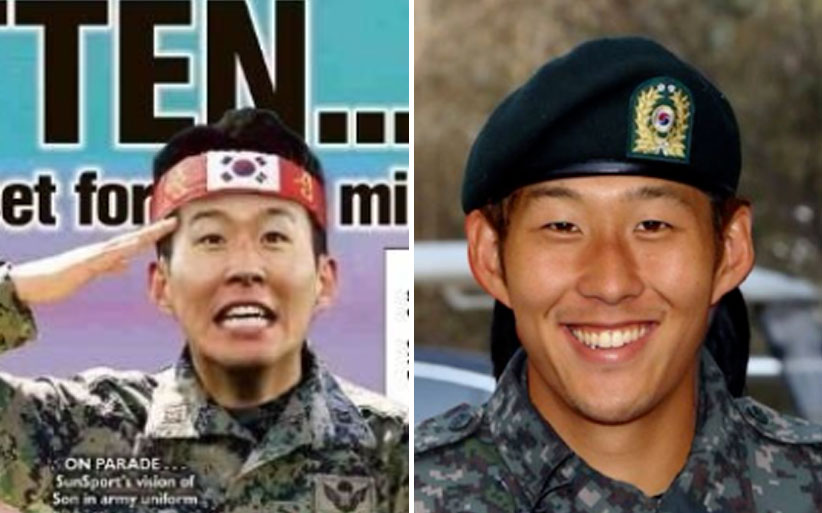 [한국과 비교되는 '영국의 손흥민 군복 합성 수준'] 영국 더 선의 합성 아래는 한국의 합성 수준ㅋㅋㅋㅋ