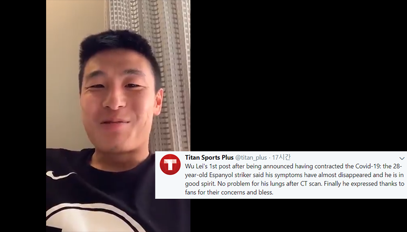 [우레이 근황.gif] 증상은 거의 사라졌고 상태가 좋아졌다고 함 CT촬영 결과 폐에 문제가 없다고 확인됨 끝으로 관심과 사랑을 준 팬들에게 고맙다고 전함 출처 : 아이라이크사커_언니