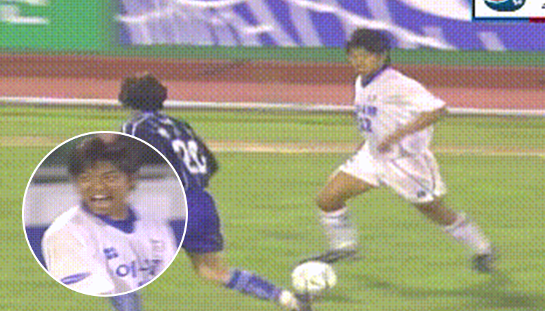 고종수의 환상 감아차기에 당해버린 꽁병지.gif