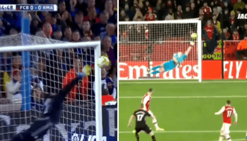 소름돋는 골키퍼들의 핑거팁 세이브 장면들.gif