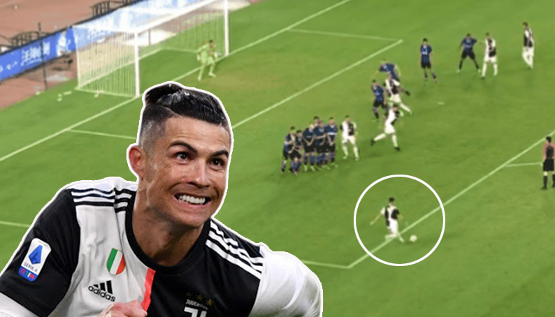 호날두의 유벤투스에서 유일한 프리킥 골.gif