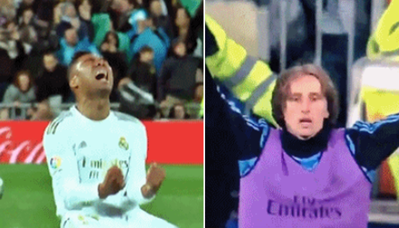 비니시우스 골장면에 대한 카세미루&모드리치 반응.gif