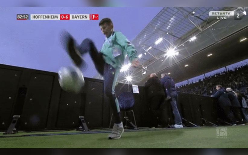 [경기 도중 축구 스킬 자랑하는 볼보이.gif] 경기가 중단된 상황에 깨알 스킬 자랑하는 호펜하임 볼보이ㅋㅋㅋㅋ 스킬 실수하는 거 귀엽네요ㅋㅋㅋ