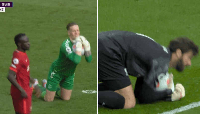['주말 예능' 경기 종료 직전 픽포드에게 복수하는 알리송] 전반 종료 직전 시간을 지연하며 씩 웃는 픽포드ㅋㅋㅋㅋㅋㅋㅋㅋ 경기 종료 직전 똑같이 픽포드 따라하면서 복수하는 알리송과 환호하는 팬들ㅋㅋㅋㅋㅋㅋㅋㅋㅋ