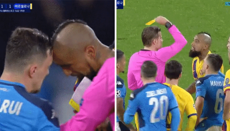 [연속 카드로 퇴장당하는 비달.gif] 태클 후 바로 신경전 펼치는 비달 그렇게 한번에 두번 옐로우 카드 받고 퇴장당하는 비달 (태클 1개 신경전 1개를 연속으로 받아버림) 88분이었는데 저기서 퇴장당해 버리네.... 출처 : 사커라인