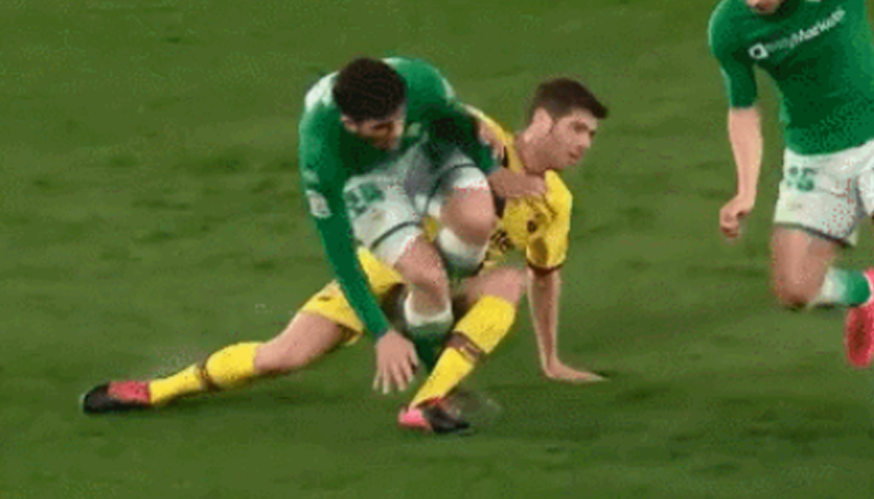 [바르셀로나에서 임대간 알레냐한테 논란의 태클 날리는 세르지.gif] 현재 세르지 로베르토가 레알 베티스로 임대간 알레냐한테 들어간 태클로 굉장히 논란중인데요. 공이 빠진 후 들어갔기 때문에 무조건 퇴장이었다, 아니다 규정상 태클하는 선수가 중심을 잃은 모습이 포착되면 손을 먼저 짚게 되는데 그 경우는 퇴장이 아니다. 여러분의 생각은 어떠신가요?? ※ 참고로 세르지는 이미 경고를 받아 옐로우카드가 있었음. 출처: 아이라이크사커