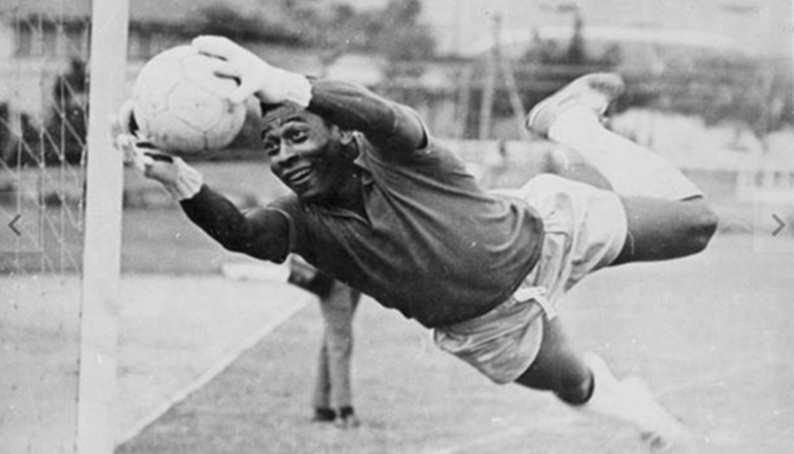 [축구 역사상 가장 발밑이 좋았던 골키퍼 클라스ㄷㄷㄷ] 1970년전까지, 그 전에는 옐로우 카드나 교체제도가 없었다. 그래서 골키퍼가 뛰지 못하게되면, 필드 플레이어 중 골키퍼로서 재능이 있는 선수가 그를 대신하게된다. 산토스와 브라질 국대에서는 펠레가 그 후보 중 하나였다. 펠레의 골키퍼로서 가장 대표적인 경기는 1964년 1월 19일에 있던 Grêmio와의 타카 브라질 (브라질 전국대회컵)의 4강전이었다. 산토스는 홈에서 3대 1로 Grêmio를 꺾었지만 원정에서 1대 3까지 지고있었다. 펠레는 이 때 해트트릭(2pk)으로 4대 3을 만들었지만 후반 41분경, 산토스의 골키퍼 지우마르는 페널티를 허용했고 퇴장당했다. 펠레는 대신 골키퍼로 활약해 pk를 선방하였고 (pk는 없었다고도 합니다), 그 이후 두번의 센세이널한 세이브를 보여주었다고한다. "지우마르가 퇴장당했을 때 펠레는 검은 골키퍼 옷을 입었다. "왕"은 두번의 훌륭한 선방으로, 특히 João Severian의 완벽한 찬스를 막아내며 그가 정녕 위대하다는 것을 증명하였다." "펠레는 지우마르 대신 산투스의 골문을 잠구어 게임을 끝내었다. 그는 이를 웃으면서, 마치 산투스나 브라질 국대에서의 연습인양 절대적으로 안정된 상태로 해내었다. 그가 공을 가졌을 때, 그와 세상의 다른 모든 골키퍼와의 차이가 있었다 - 그는 공을 골킥으로 처리하는 대신, 페페에게 정확한 패스를 주어서 공을 지켜내었다." 브라질 국대팀에서 골키퍼 연습을 하는 펠레 요약하면 한 게임에서 해트트릭 이후 두번 이상의 선방...ㅋㅋ 결국 이 1963 타카 브라질에서 산투스는 우승하고, 펠레는 골키퍼로도 우승해본 적이 있는 선수가 됩니다 ㅋㅋ 출처 : 사커라인