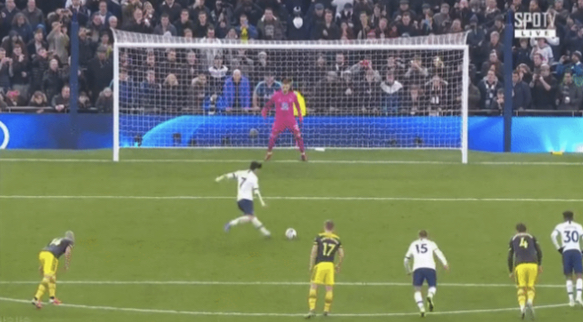 구석으로 제대로 꽂힌 PK, 손흥민의 4경기 연속골.gif