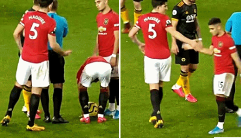 프리킥에서 기웃거리는 페레이라 차단하는 주장 매과이어.gif